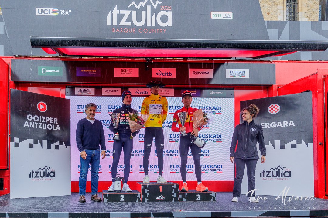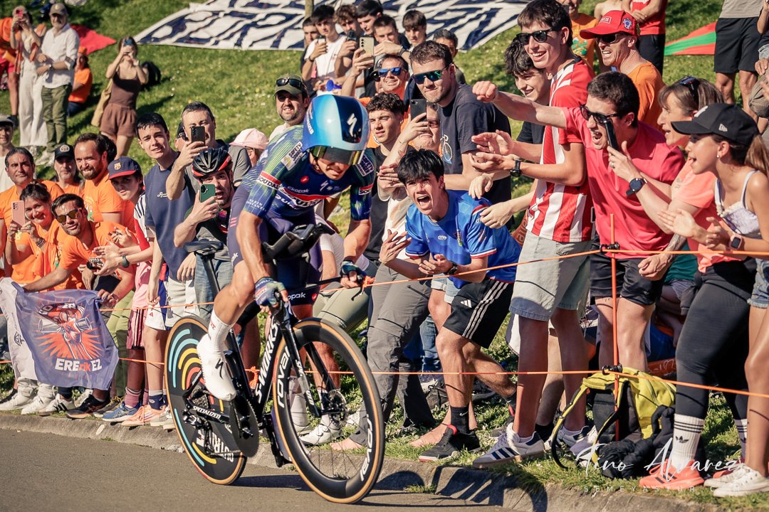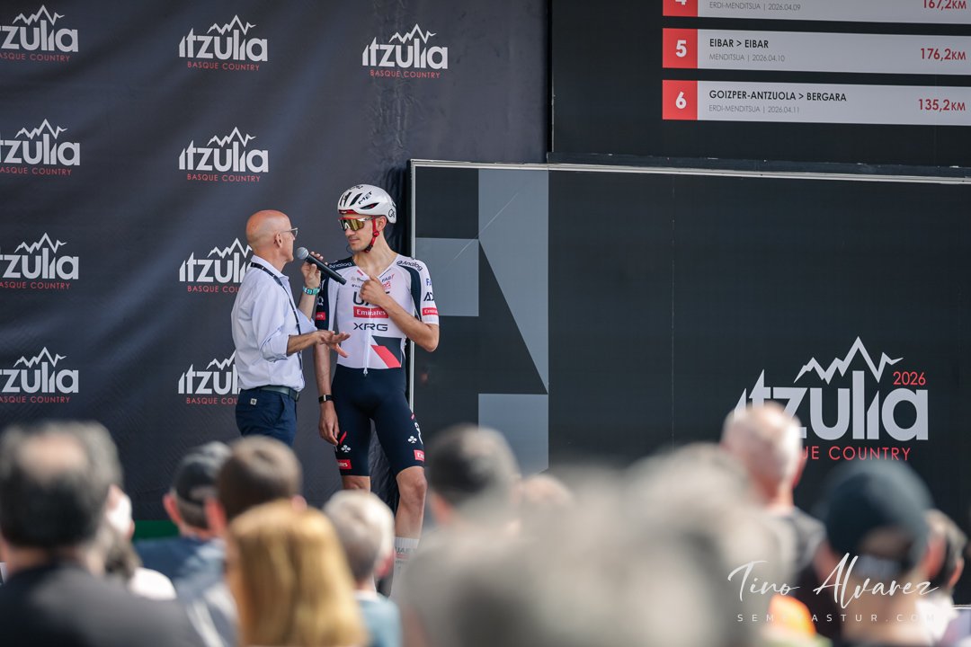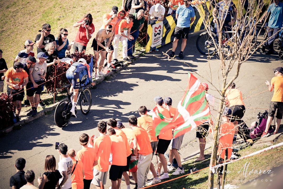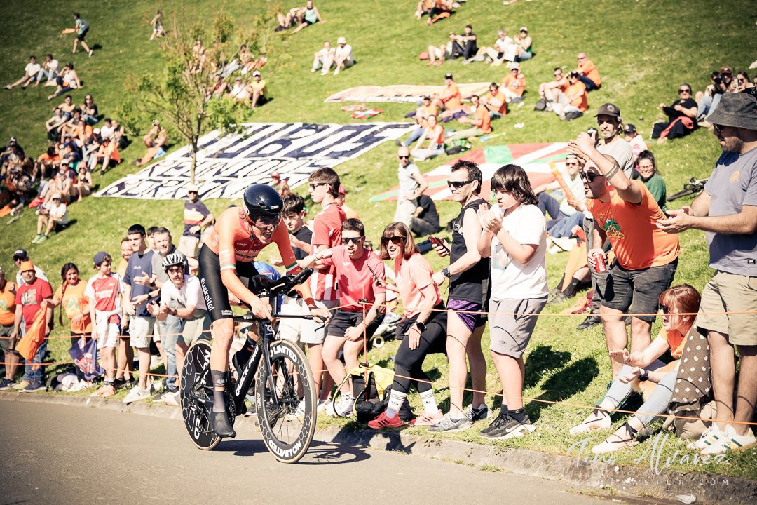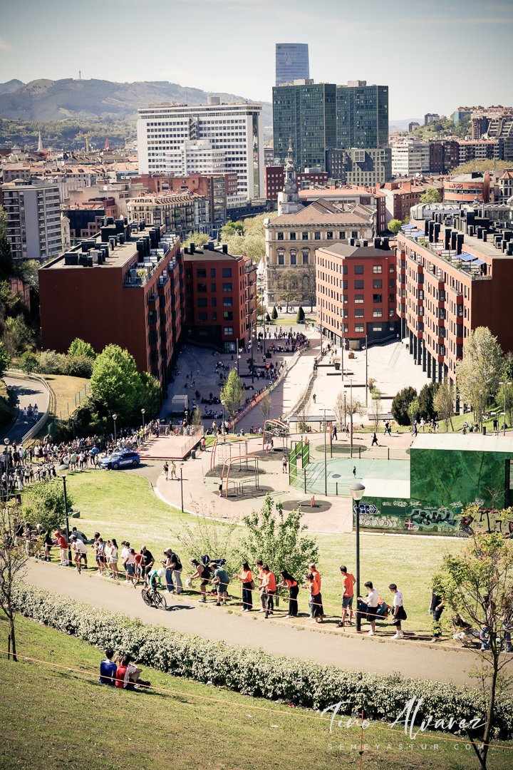 Hoy arrancó la edición de 2026 de la Itzulia con una contrareloj individual de casi 14 kilómetros en Bilbao que cuatro años después recuperaba aquella etapa del 2021 pero esta vez con público y con un fuerte calor de casi 30 grados que condiciono el rendimiento de los corredores, para un recorrido caracterizado por las fuertes subidas de inicio y de fin con un repecho del 19% en el Parque Etxebarría en los últimos 500 metros.