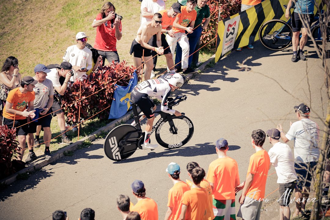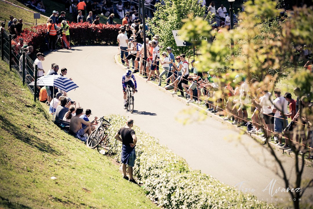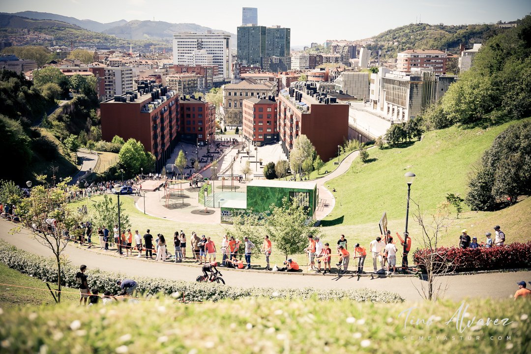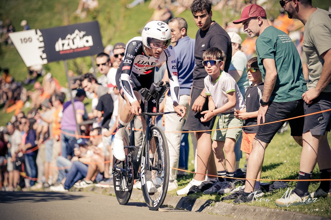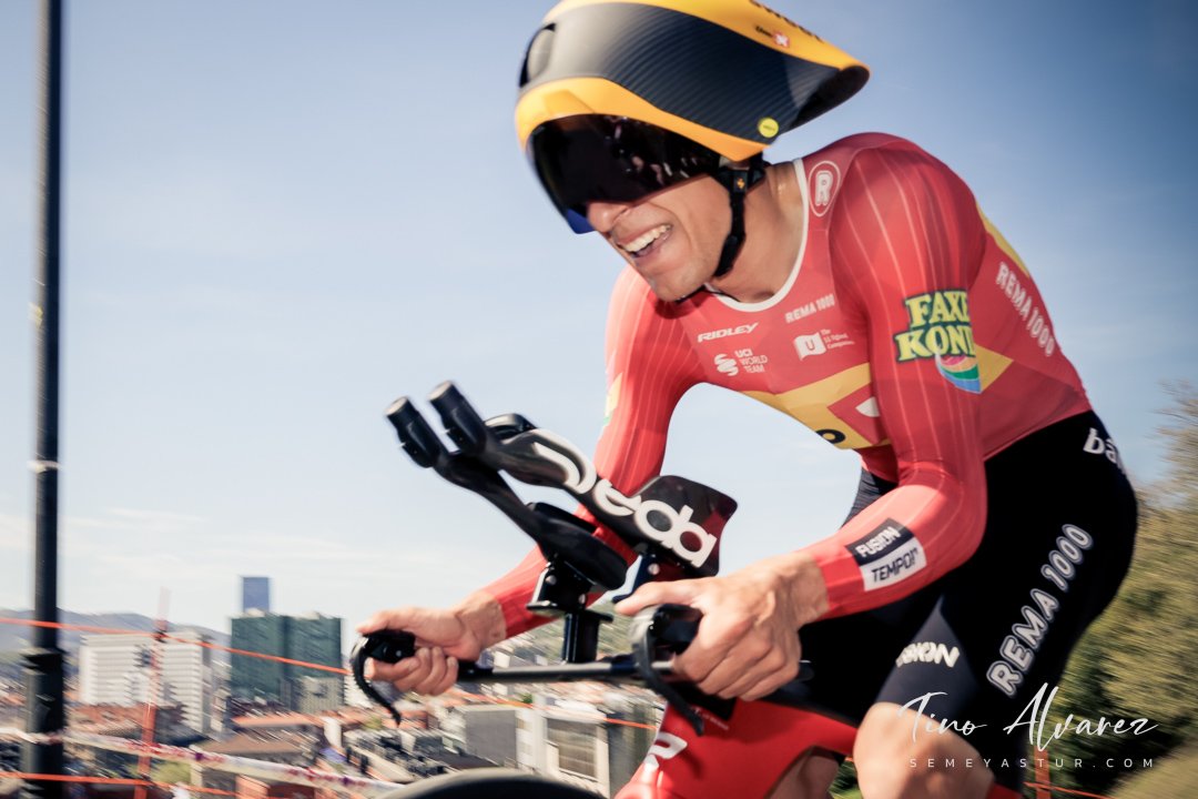 Hoy arrancó la edición de 2026 de la Itzulia con una contrareloj individual de casi 14 kilómetros en Bilbao que cuatro años después recuperaba aquella etapa del 2021 pero esta vez con público y con un fuerte calor de casi 30 grados que condiciono el rendimiento de los corredores, para un recorrido caracterizado por las fuertes subidas de inicio y de fin con un repecho del 19% en el Parque Etxebarría en los últimos 500 metros.