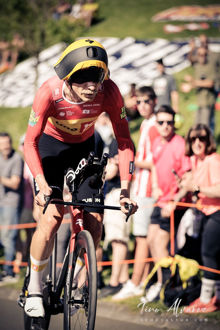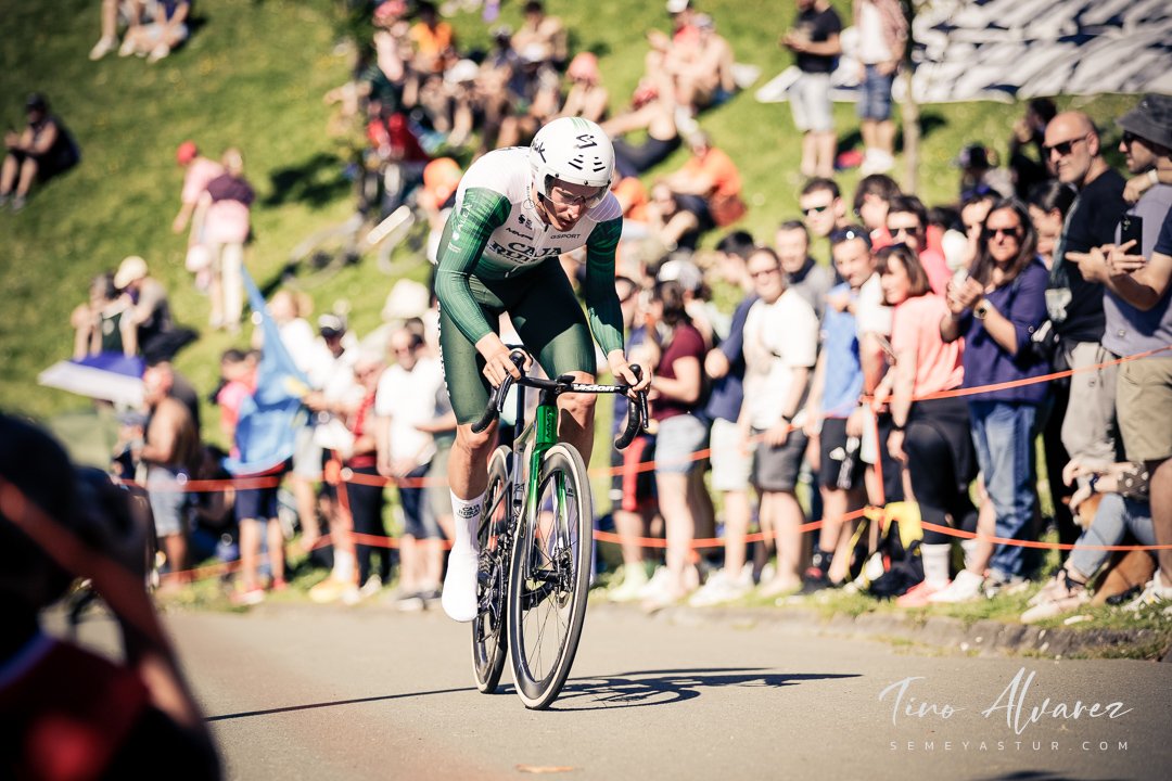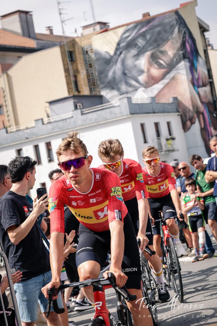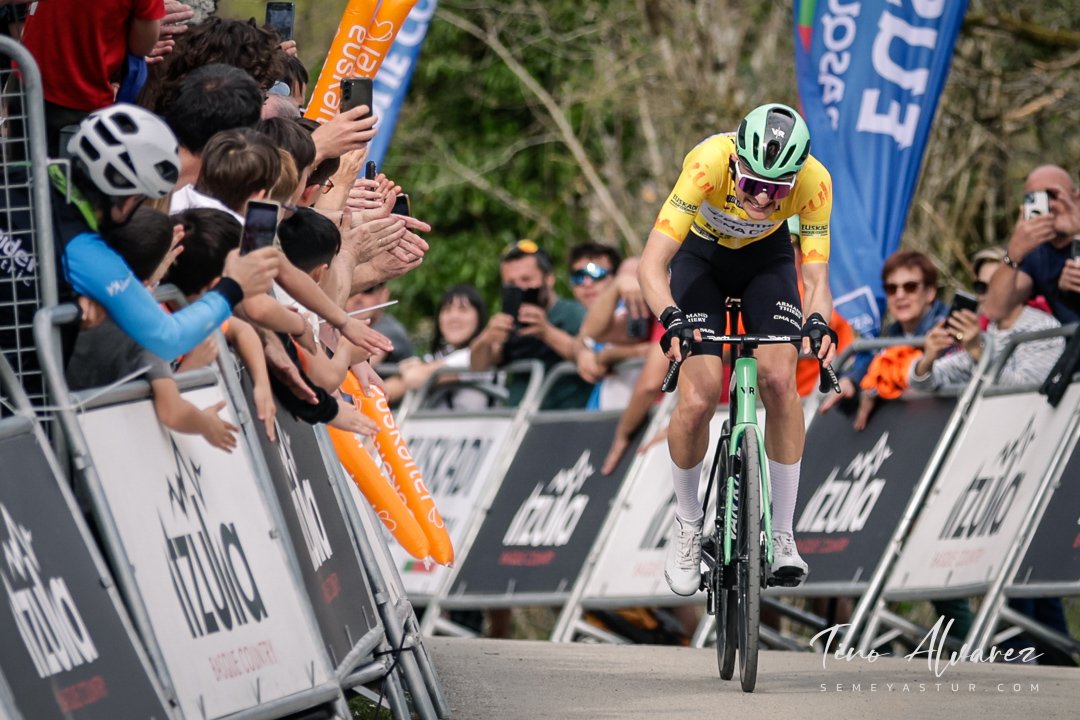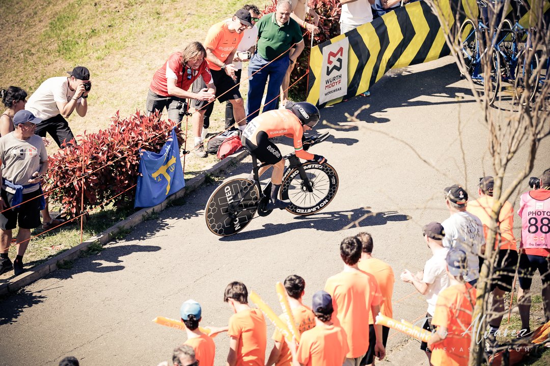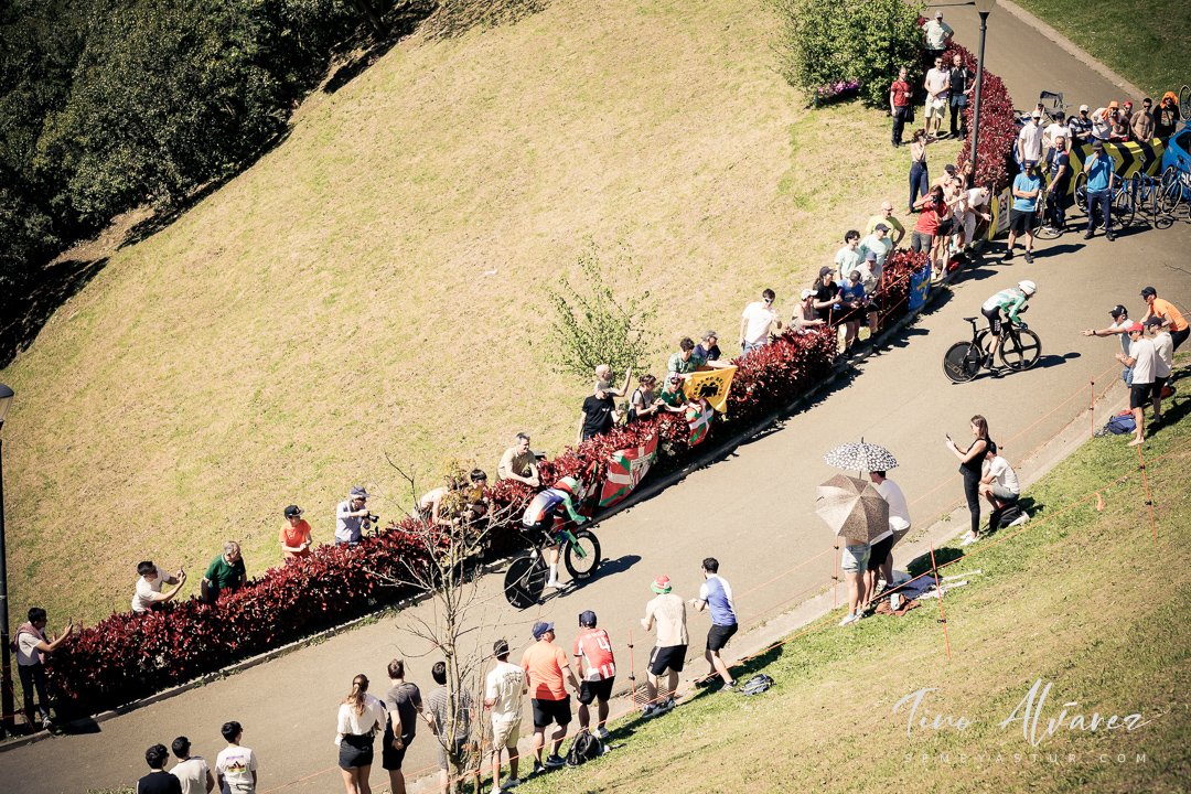 Hoy arrancó la edición de 2026 de la Itzulia con una contrareloj individual de casi 14 kilómetros en Bilbao que cuatro años después recuperaba aquella etapa del 2021 pero esta vez con público y con un fuerte calor de casi 30 grados que condiciono el rendimiento de los corredores, para un recorrido caracterizado por las fuertes subidas de inicio y de fin con un repecho del 19% en el Parque Etxebarría en los últimos 500 metros.