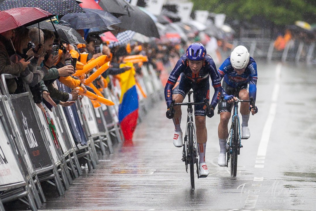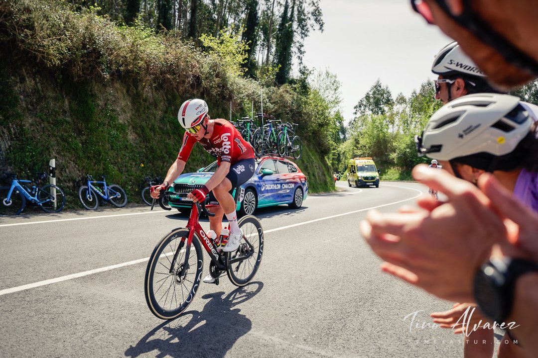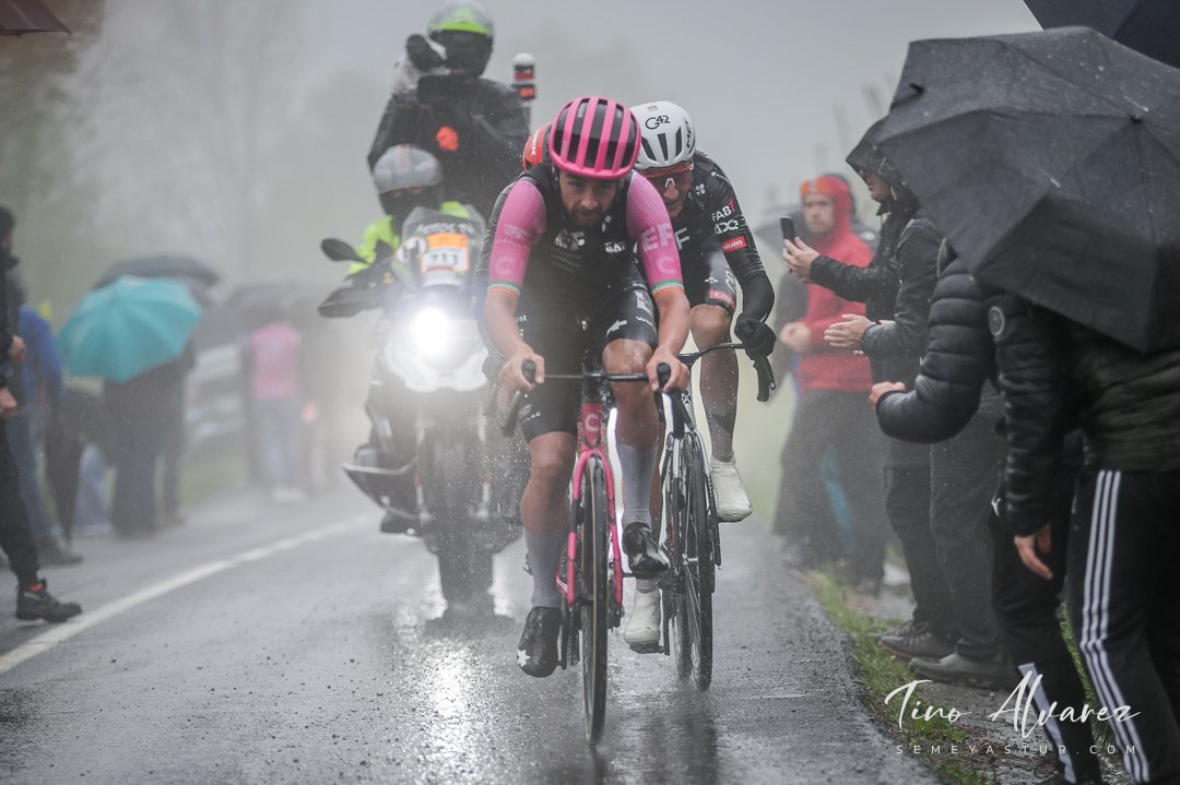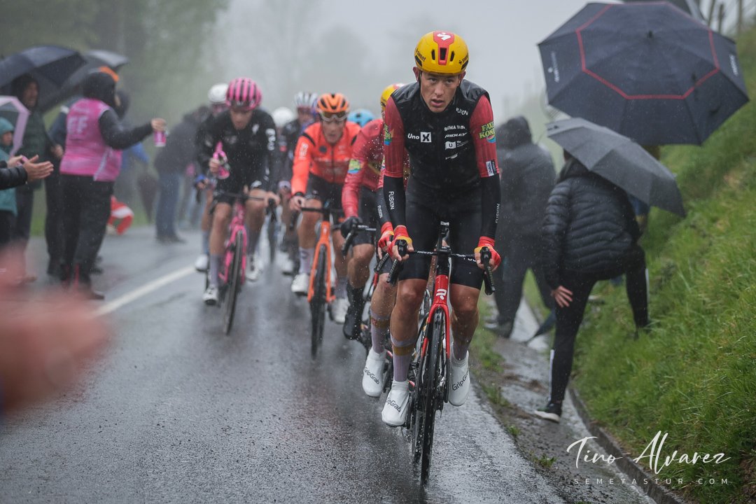 El líder Seixas, supo capear el temporal con maestría, llegando a irse en solitario por detrás de los grupos en fuga, entre los que los del UnoX veían la oportunidad de llevar a Tobias H. Johannessen al podio y tiraban a tope.